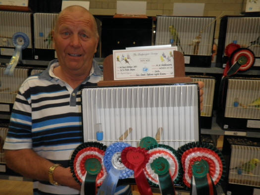 The Best Crest Young Bird award went to Arthur Millers Tufted Opaline Cobalt cock sporting a good tuft and staged in good condition. Jaak Zeebroek staged a good quality Circular Grey cock in second place; a bird of good size but slightly out of condition. The Findlay & Flavell partnership occupied third spot again with a Circular Light Green cock of good size. The Best Young Bird Opposite Sex award went to The Cheatley & Alcorn partnership with a Circular Dark Green hen of good crest.