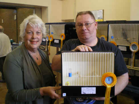 After lunch Janice Al-Nasser was the guest speaker and, with the aid of a power point presentation, she highlighted the problems associated with moving house and especially the birds. The problem that the partnership encountered while housing the birds over winter in the garage and the death of more than 100 of their best birds due to a virus. She talked about building the new birdroom and all the new equipment from breeding cages to small flights imported from Germany that they have inside the new birdroom. She showed some of their stud cocks over the years and the birds that they have bred to build a new stud after the disaster.